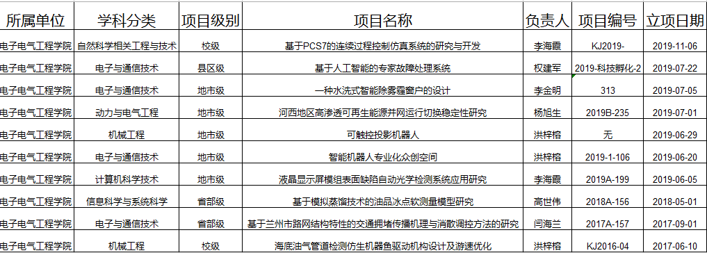 电子学院近年立项项目