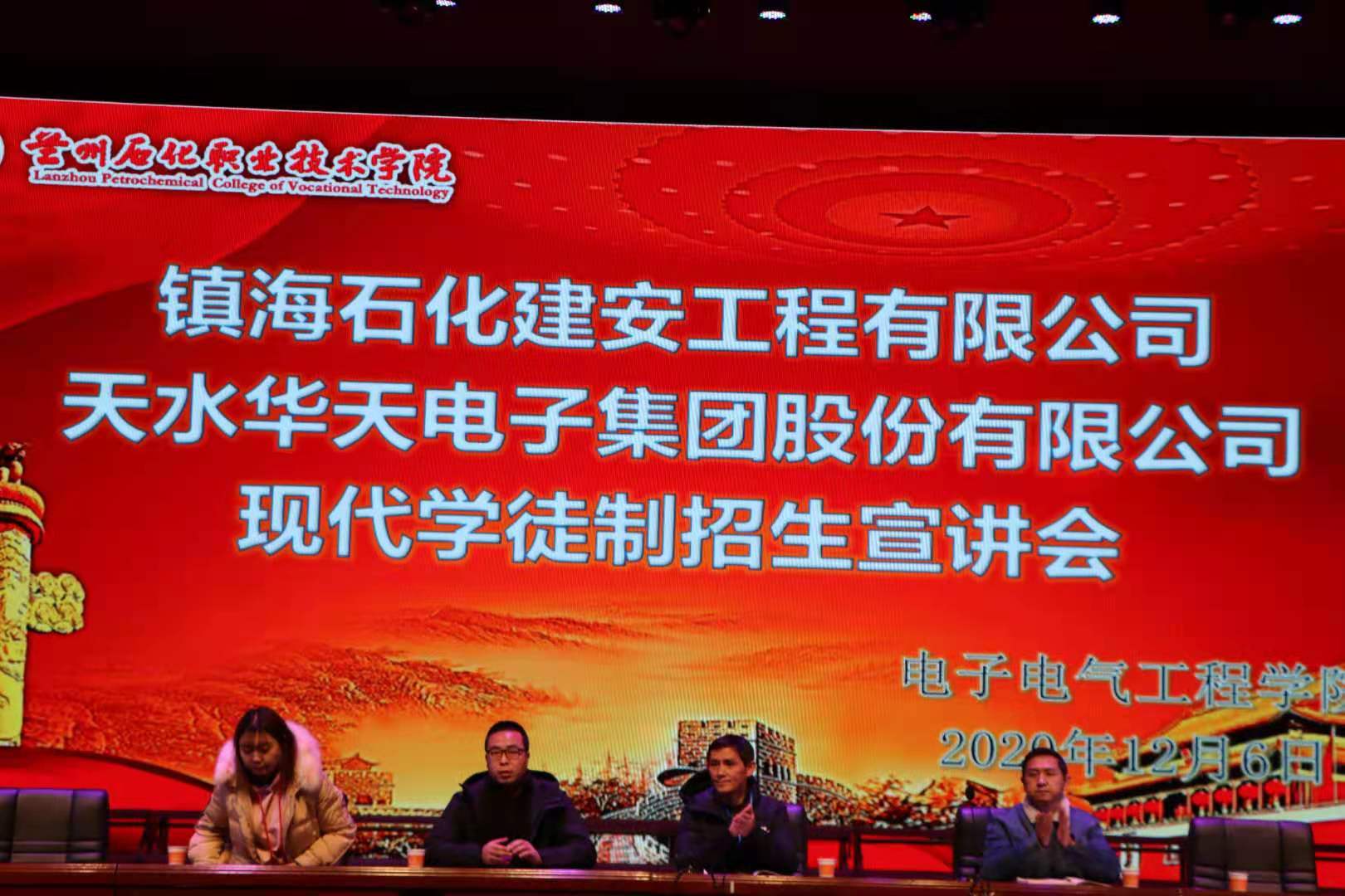宣讲会上,张军代表我院向两家公司的到来表示欢迎,并向同学们传达了《兰州石化职业技术学院2020年现代学徒制订单培养招生暨综合评价录取职业适应性测试实施方案》文件精神。然后天水华天电子集团负责人通过ppt、视频、展板等方式向同学们介绍了公司概况,镇海石化建安工程有限公司负责人依次从公司荣誉、招生专业与计划、薪资与福利、企业奖助金、企业业绩、仪器设备及人员需求等多方面宣讲了公司概况。两家公司负责人现场对同学们提出的各类问题进行了详细的解答,并希望同学们积极报名参加。