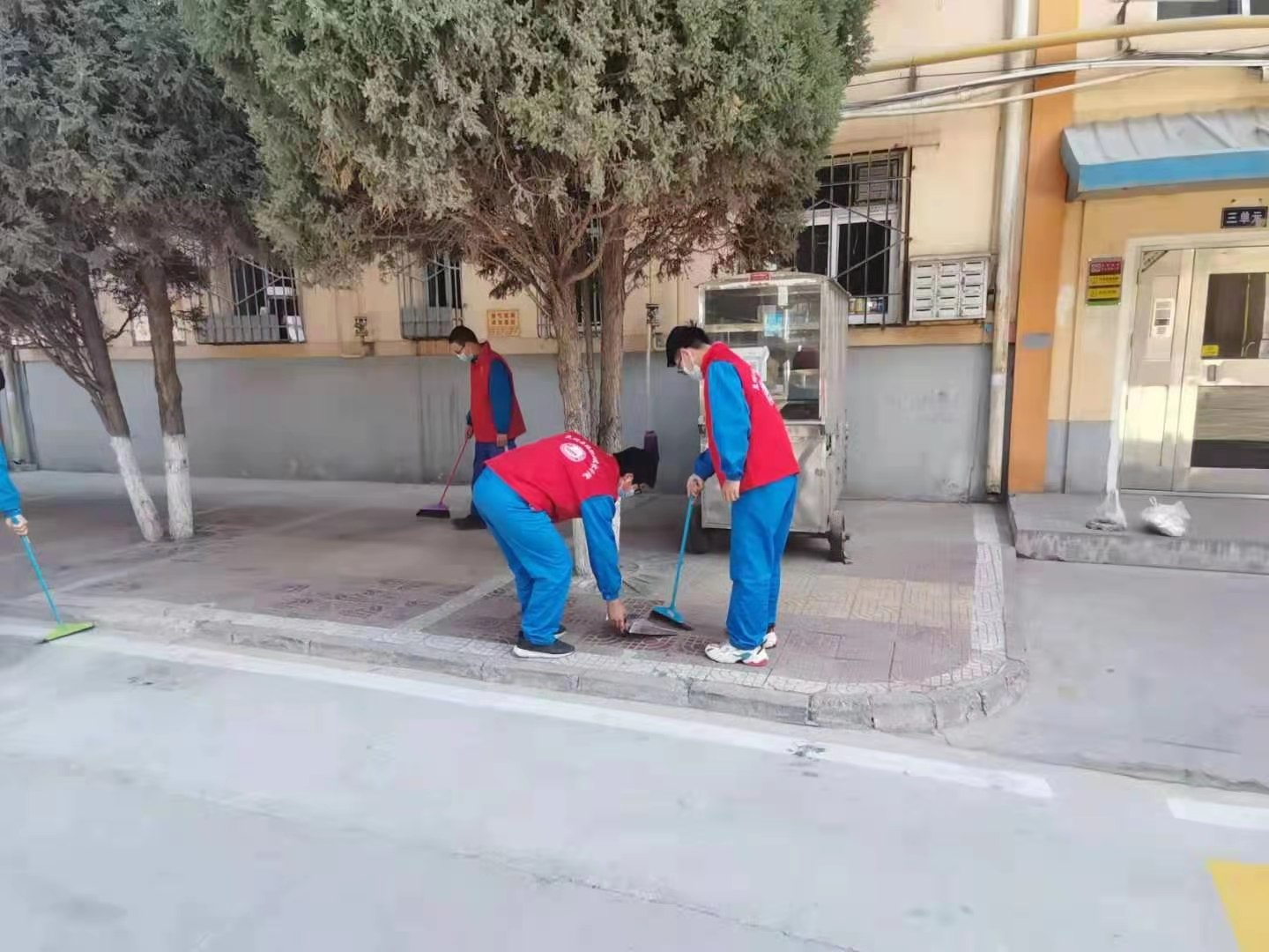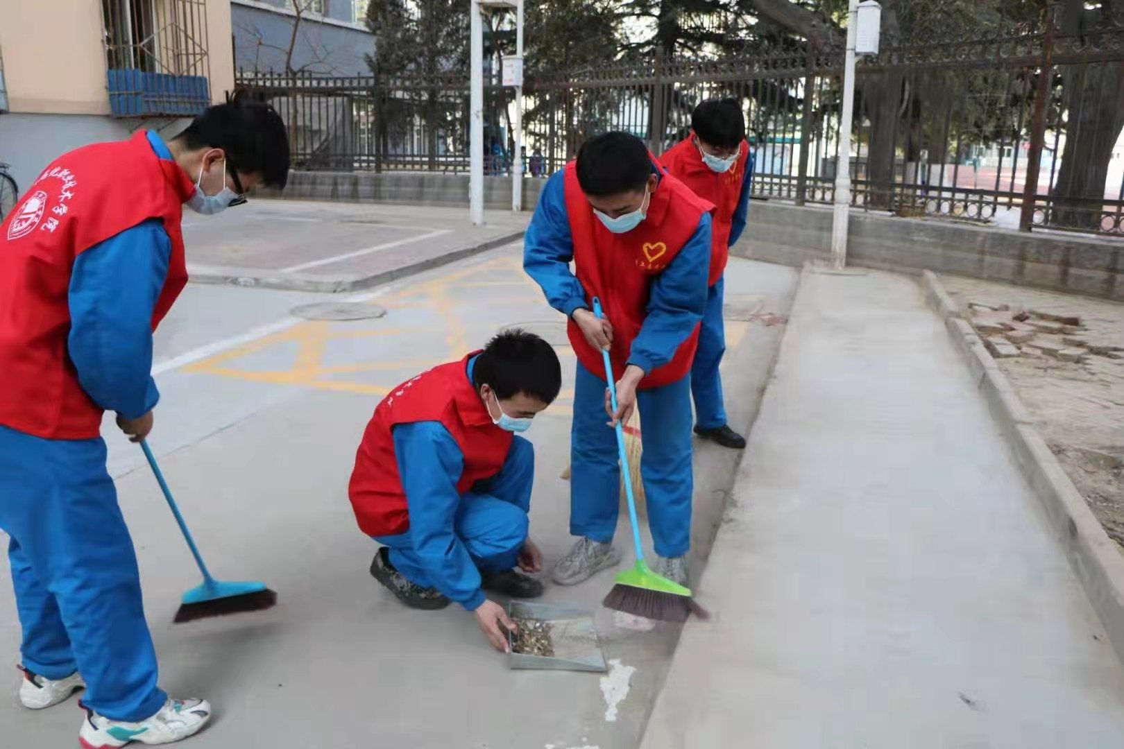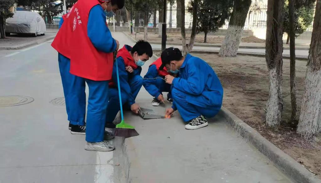 当天,在学院团委的部署下,同学们围绕活动方案紧密开展,此次活动同学们被分成两组,一组负责打扫学校的宣传橱窗栏、国旗台、运动器械、跑道、草坪;另一组同学则负责排查五中心教学楼、家属楼周围的安全隐患,同学们更是铭记志愿者服务精神,及时的为值班阿姨排放花盆、搬运垃圾袋、洗漱抹布,用自己的实际行动为学校增添一份清新、一抹明亮,通过近一个多小时的艰辛劳动,整个区域焕然一新。
