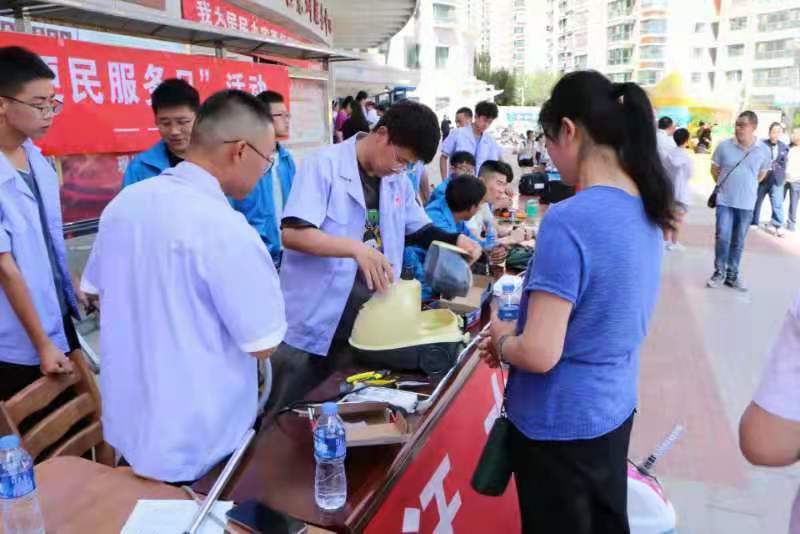 活动伊始,我院电气学会通过和兰馨花园小区负责人的沟通,获得了他们的对本次义务维修活动的认可和支持,并提供了维修地点。活动中,按照宣传的步骤和组织程序,前来维修的小区居民络绎不绝。同学们接收到需要维修的家电主要有:电吹风、电风扇、台灯、排插、电磁炉、电热水壶等家用电器,共收取所需维修的电器20余件。活动有序进行,居民们送来的家电由专门登记人员名称登记、损坏部位登记、联系人及其联系方式登记等,再由专门维修员进行检测维修,最后将维修效果登记并反馈。在这次活动中,同学们发扬“不怕苦、不怕累、不怕麻烦”的石化精神,争取为小区居民修好更多电器,为他们带来生活的便利。