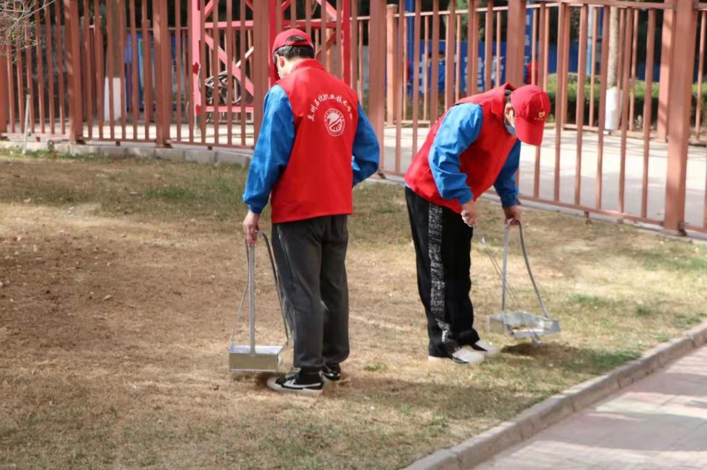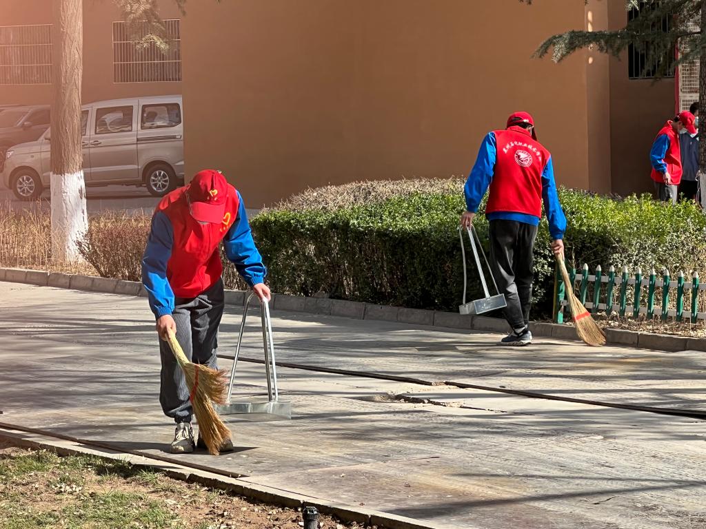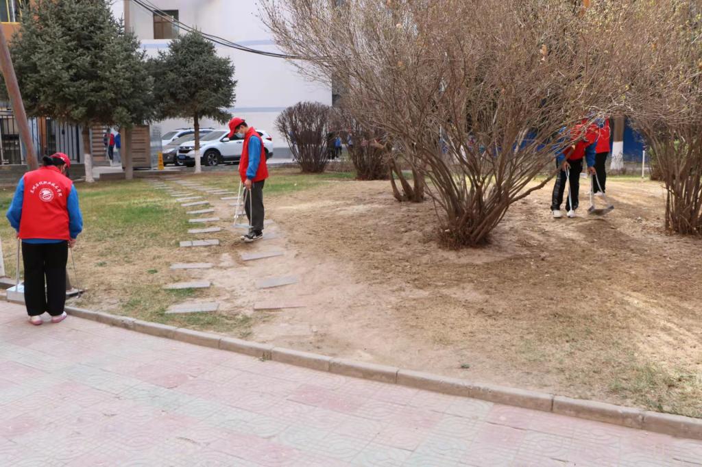 我院党总支书记张军首先做了活动前的动员,为本次活动划定了活动范围,进行了任务分工和活动注意事项的强调,本次活动的范围为中泰公寓楼下、东马路—第三工业中心周围片区。接着,活动井然有序展开,志愿者们头带红帽,身穿志愿者红色马甲的身影穿梭在中泰楼周围的每个角落,大家分别对中泰公寓一楼门窗、小花园里的垃圾桶、凳子及地面进行了彻底的清扫和擦洗。在整个清扫及清洁的过程中,大家齐心协力、紧密合作,认真打扫每一个死角,充分发扬了不怕苦、不怕累的奉献精神,为学院师生营造了干净整洁的校园环境。同学们热情洋溢,认真对待的态度,展现了志愿者们阳光向上,乐于奉献的精神。