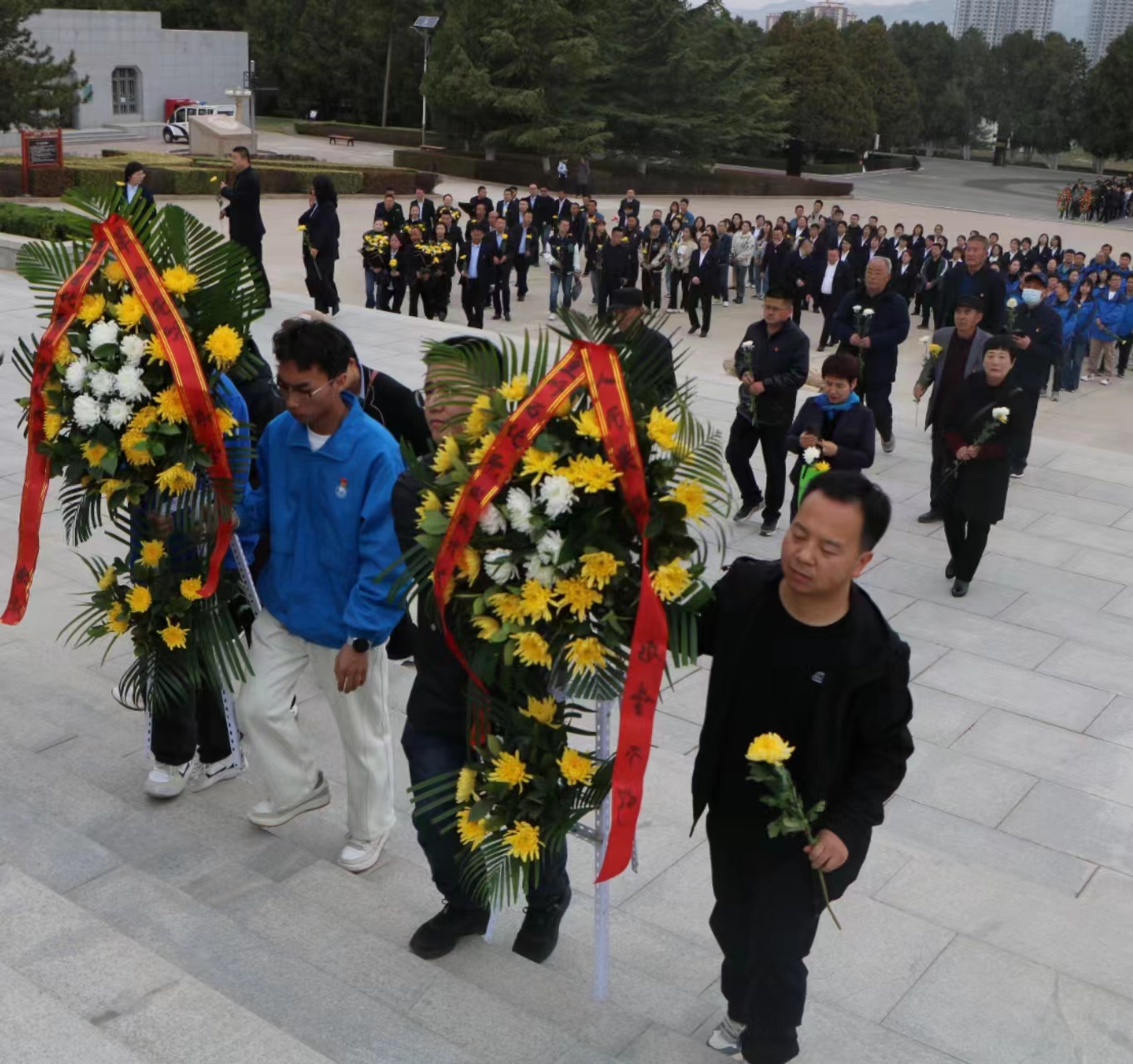 上午10时,按照现场工作人员指引,全体人员有序的进入烈士陵园,园区内庄严肃穆。首先,主持人宣讲了纪念碑历史和革命烈士的光辉事迹,并致悼词,全体人员默哀。接着,全体人员瞻仰烈士纪念碑,手捧献花,深深鞠躬,将手里的鲜花献给先烈。最后,按照活动计划,全体人员参观了兰州战役纪念馆。活动过程中,全体学生党员秩序井然,体现了学院学生良好的精神风貌,并纷纷表示,要在以后的学习生活中积极向党组织靠拢,提高自己的党性思想,坚定自己的入党信念,自信自强、守正创新、踔厉奋发、勇毅前行,学习先辈们肯吃苦、敢拼搏的时代精神,争做能担时代大任的社会主义新青年。