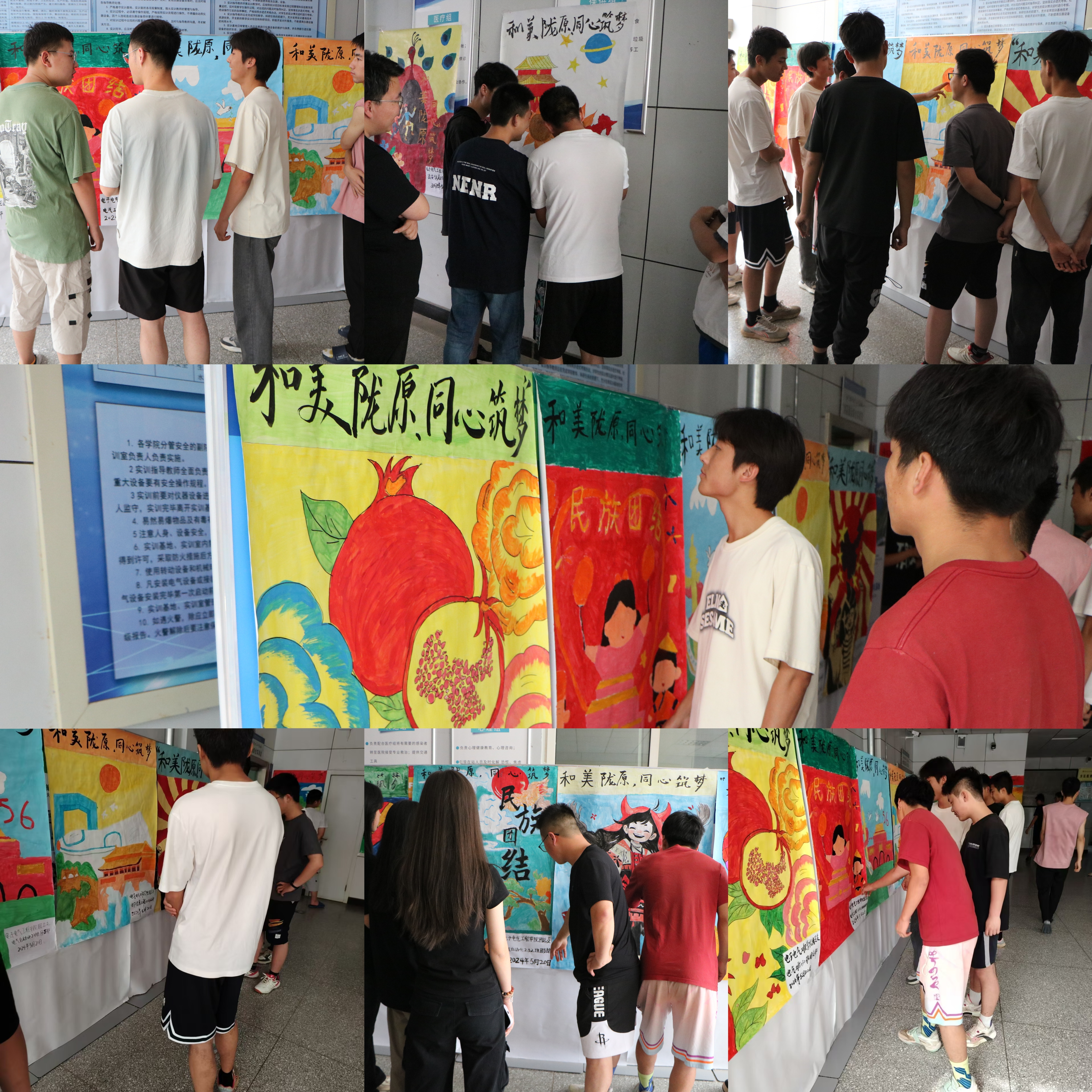 展览前,同学们发挥创意,精心设计了众多以民族团结进步为主题的海报作品,这些作品内涵丰富,寓意深刻充分展现了中华民族多元一体、和谐共生的精神风貌。在海报展览期间内,吸引了大量师生驻足观看。展示的作品中,有的描绘了各民族学生共同学习、生活的场景;有的则以中华传统文化为灵感,通过寓意深远的图案和文字,传递出对中华文化的自豪感和认同感;有的则以形象的比喻,将五十六个民族比作紧挨着的石榴籽,寓意各民族团结一心、共同进步。通过海报绘制展览这种润物细无声的宣传教育中不断深化各族青年交往交流交融,推动中华民族共同体理念入脑入心,全力营造“中华民族一家亲,同心共筑中国梦”的浓厚社会氛围,