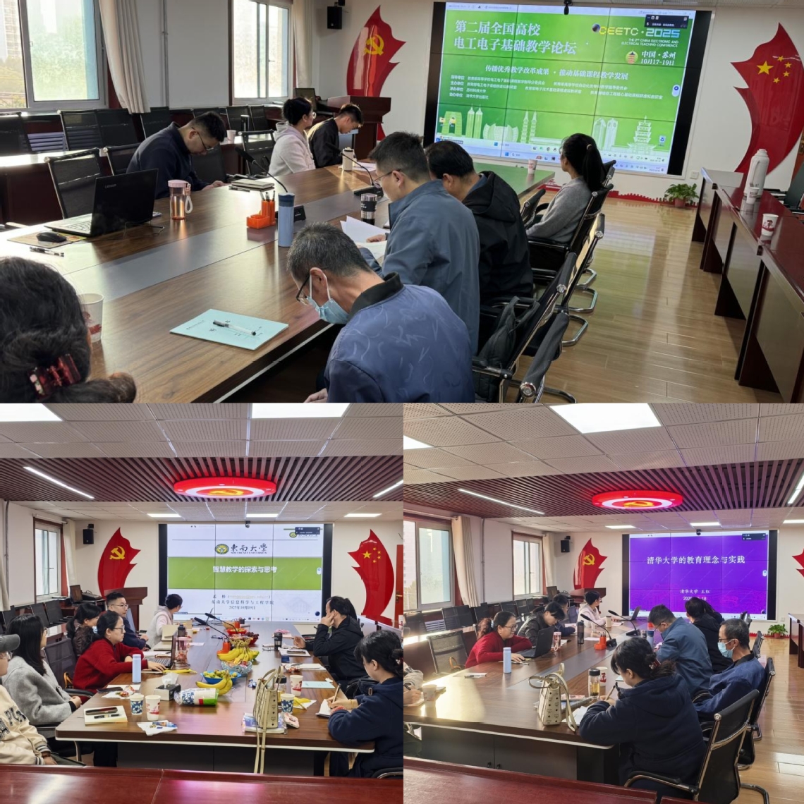 为进一步传播优秀教学改革成果,推动基础课程教学发展,促进更多教学改革成果产出。yl7703永利于10月18日在学院会议室组织承担相关课程的骨干教师线上线下同步参加电工电子基础教学论坛培训学习。