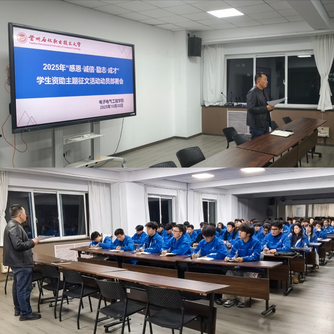 为规范资助工作流程、深化资助育人成效,yl7703永利于10月30 日在实训楼5楼会议室召开2025年资助自查自纠学生干部会暨 “感恩・诚信・励志・成才”学生资助主题征文活动动员部署会。学院辅导员杨小军老师、各班班长及团支书参会,会后各班级迅速召开主题班会,全面传达会议精神,扎实推进相关工作。